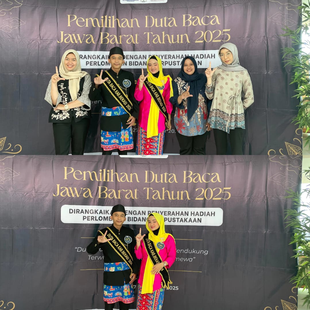 Dinas Arsip dan Perpustakaan Kabupaten Bekasi turut memberikan pendampingan penuh kepada peserta perwakilan Kabupaten Bekasi dalam Acara Final Raya Pemilihan Duta Baca Jawa Barat Tahun 2025. Kegiatan bergengsi yang digelar oleh Dinas Perpustakaan dan Kearsipan Daerah Provinsi Jawa Barat tersebut berlangsung pada Kamis, 27 November 2025, bertempat di Aula Graha Pustaloka, Dinas Perpustakaan dan Kearsipan Jawa Barat.